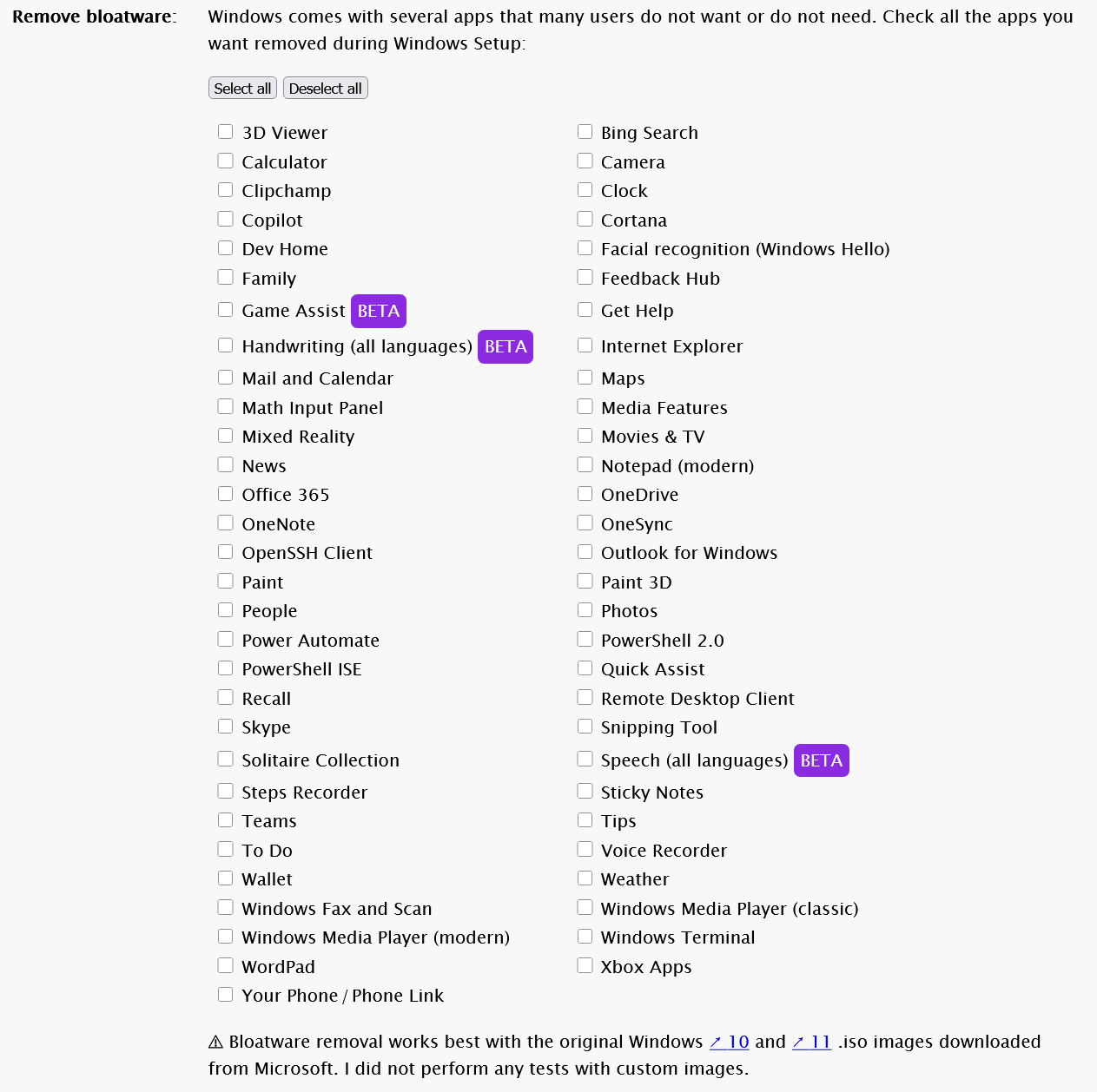 https://schneegans.de/windows/unattend-generator/英語で何が書いてあるかほとんど分からないので、翻訳サイトの