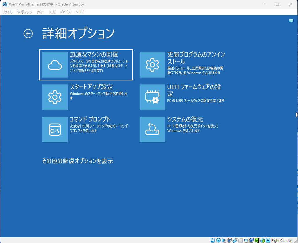 有効にして回復環境に入ってみると、QMR の選択肢が現れました