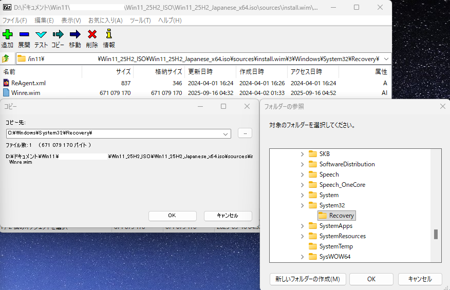 C:\Recovery\WindowsRE を開こうとすると「アクセスが拒否されました」で操作できない場合は…