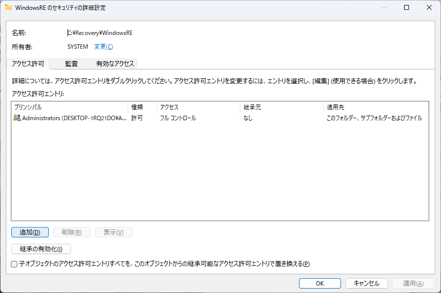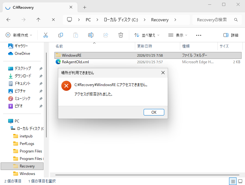 reagentc /enableがエラーになる 回復環境(Windows RE)がおかしい(Win10/11)