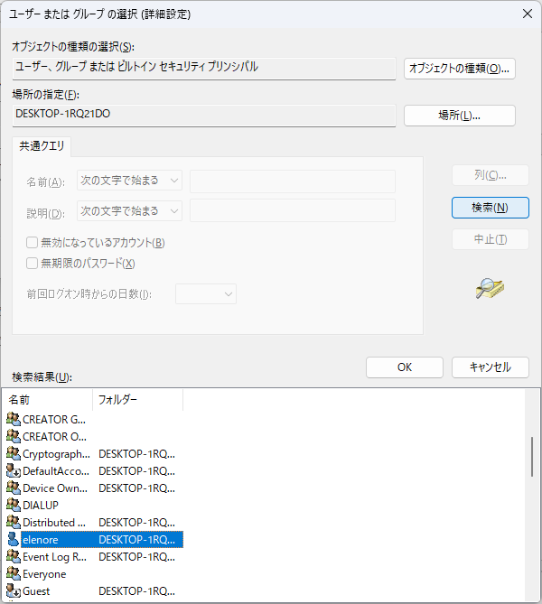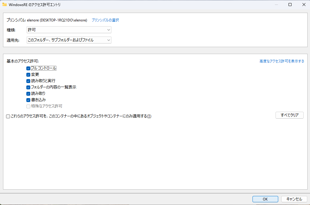 フォルダ(ファイル)のアクセス権を設定して、操作できるようにします。管理者権限のアカウントで設定します