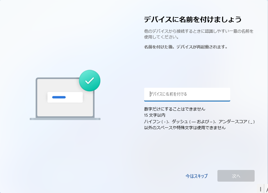 - 「デバイスに名前を付けましょう」 → 今はスキップ(画像16)