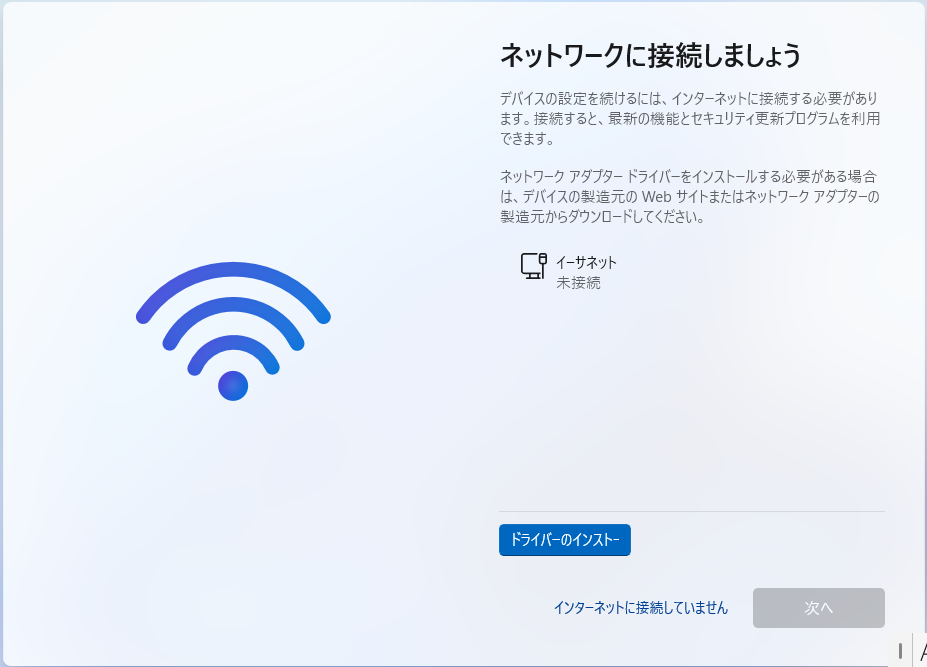 - Microsoft Update カタログからダウンロードした Windows 11 24H2 向けのスタンドアロンインストーラー(累積パッチ。セキュリティ更新プログラム)は、インストール時にネットへの接続を要求しますが、ネットへの接続をしてスタンドアロンインストーラーが起動した後、すぐにネットの接続を切断しても問題ありません。その場合だと、まずチップセットドライバ等のインストールを行い、その後無線LAN子機ドライバー等をインストール。そして累積パッチの適用の順番でいいのではと思います(ネットへの接続は不要になったようなので取り消し)