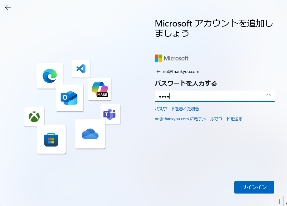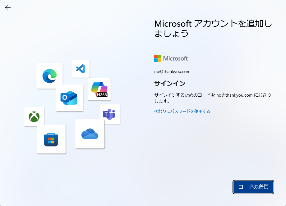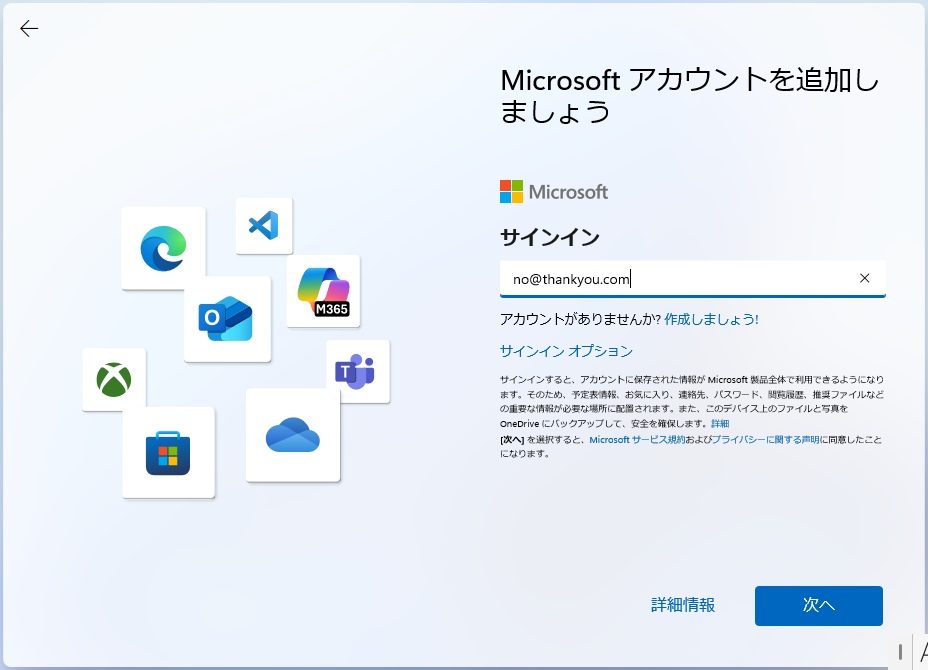 - あるいは、MS アカウント入力画面で